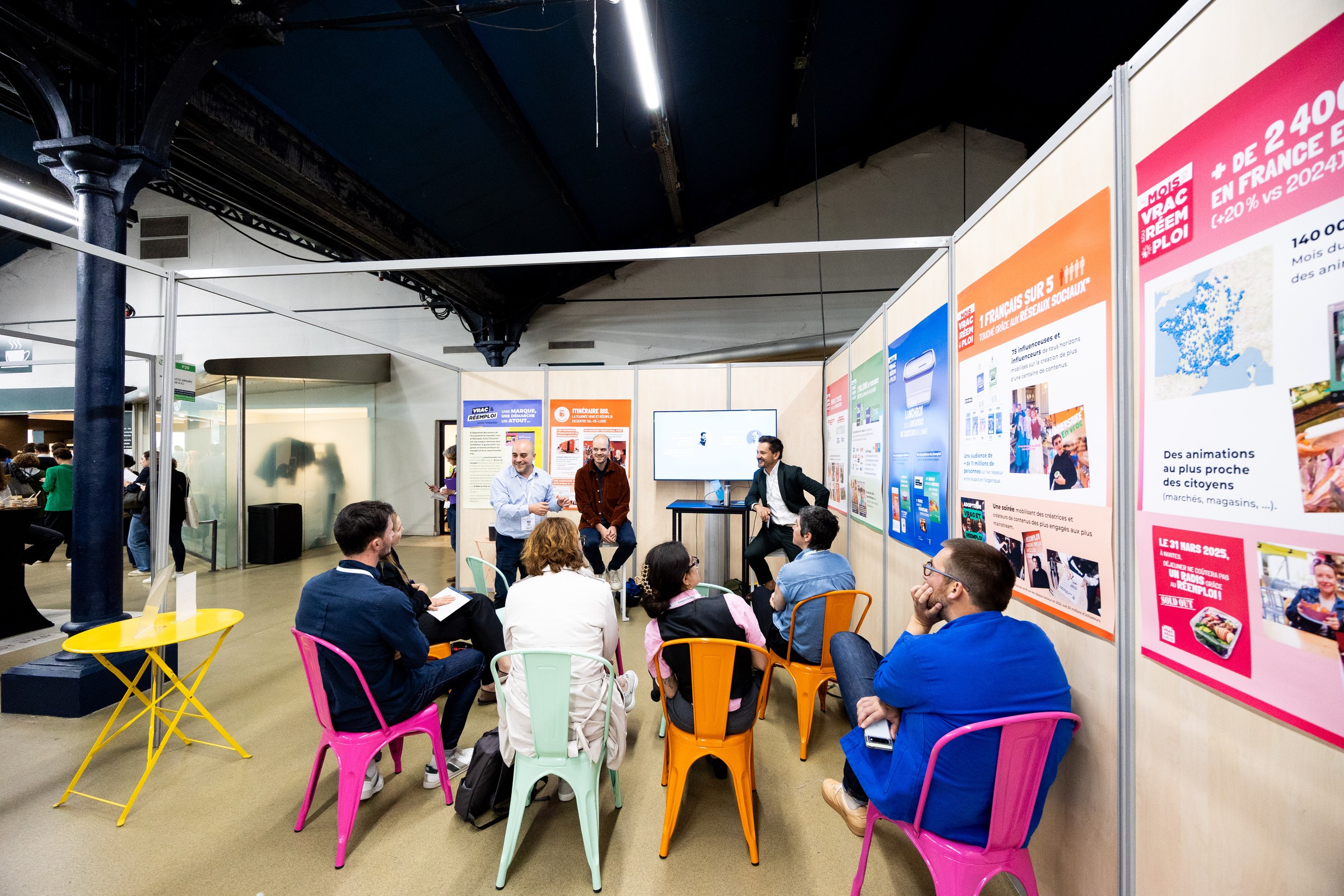 Enfin, faisons un focus sur le stand VRJE (Vrac & Réemploi, Juste l’essentiel) qui est la marque grand public de Réseau Vrac & Réemploi. Dans un espace dédié, l’association a présenté la marque collective VRJE et a mis en lumière ses projets, ainsi qu’une exposition-bilan du Mois du Vrac et du Réemploi, intégrant un des projets phares qui a été réalisé en région Centre Val de Loire : la tournée Itinéraire Bis et sa caravane immersive. L’exposition faisait le bilan des expériences réussies et des retours chiffrés sur les campagnes de communication. Ces initiatives, qui visent à sensibiliser les citoyens et à soutenir les professionnels engagés dans une logique de réduction des déchets, ont attiré de nombreux visiteurs et permis de faire découvrir nos actions de manière concrète.